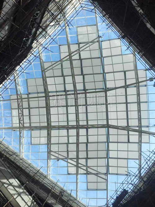 近日,由賽尚遮陽(yáng)承接的新疆克拉瑪依工程教育基地圖文信息戶外遮陽(yáng)簾工程順利完工。此項(xiàng)目采光頂具有一定的形狀特色,賽尚遮陽(yáng)更加甲方遮陽(yáng)及調(diào)光需求,結(jié)合采光頂形狀特色設(shè)計(jì)出具有特定形狀的戶外天幕簾布局,整體天幕遮陽(yáng)簾打開不但具有遮陽(yáng)隔熱實(shí)效,同時(shí)達(dá)到了較高的藝術(shù)性。