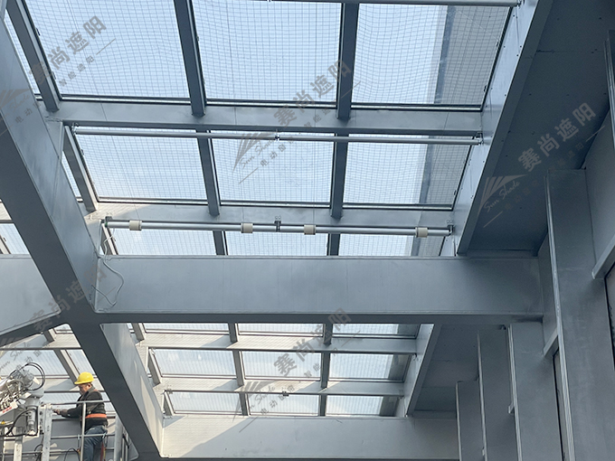 現(xiàn)在越來越多的高空作業(yè)都選用蜘蛛車來協(xié)助工作,因?yàn)樗绕胀_手架更智能化,更方便移動(dòng),此次采光頂天棚簾的安裝全依靠這臺(tái)智能化的高空作業(yè)車配合我們工作,正因?yàn)橛辛怂攀刮覀兊氖┕みM(jìn)度更有效率,是現(xiàn)在高空作業(yè)中比較流行的一種施工工具,更是一種發(fā)展趨勢(shì),同時(shí)也是整個(gè)項(xiàng)目安裝的一個(gè)特色。