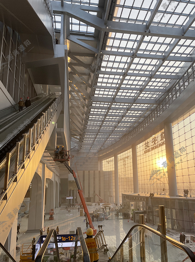 雄安高鐵站的施工進(jìn)度真的很快,由賽尚遮陽承接的采光頂遮陽項(xiàng)目將要接近收尾工作,項(xiàng)目現(xiàn)場(chǎng)的施工團(tuán)隊(duì)井然有序,就連履帶式蜘蛛車也在發(fā)揮它獨(dú)有的特性。以下是由我司領(lǐng)導(dǎo)考察現(xiàn)場(chǎng)所拍攝的項(xiàng)目照片: