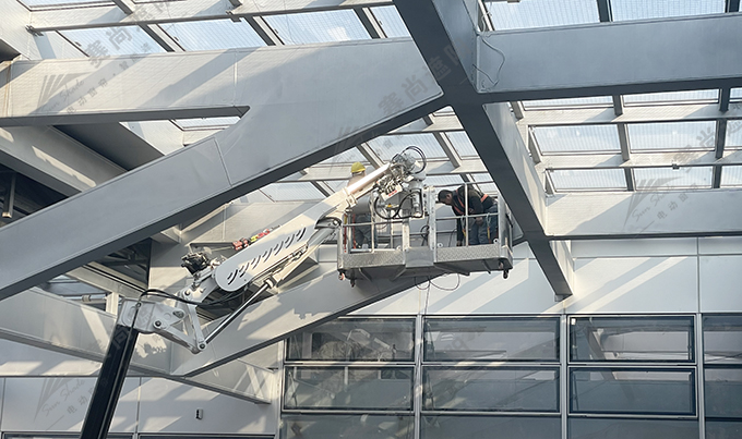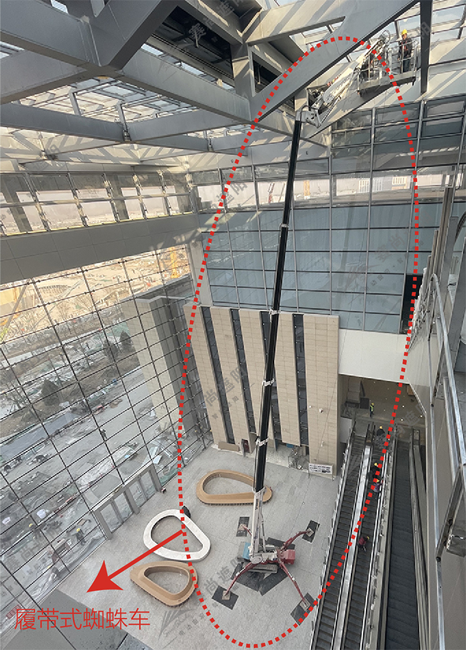 由此可見,我們可以看到在安裝采光頂天棚簾過程中,為了此項(xiàng)目能盡快順利完工,項(xiàng)目上用到的履帶式蜘蛛車協(xié)助工作,為什么不用腳手架呢,下面就跟隨小編來了解一下它的工作原理及優(yōu)勢(shì):