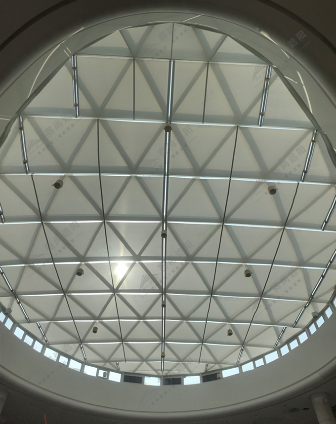 近日,賽尚遮陽承接的雙一科技采光頂FSS電動天棚簾遮陽工程順利完工,甲方很滿意。雙一科技的頂棚為雞蛋型橢圓頂,從外部效果圖來看內(nèi)部設(shè)計成拼接的菱形塊,經(jīng)我司技術(shù)人員的考察及結(jié)合現(xiàn)場需求,我們做出相應(yīng)的遮陽方案。FSS遮陽產(chǎn)品可隨使用者按需求調(diào)節(jié)光熱的舒適狀態(tài),當(dāng)我們需要采光時可將產(chǎn)品收起,隱藏在卷管的一端,不影響建筑物的構(gòu)造,既能起到遮陽調(diào)光又能起到美化建筑物的作用。以下是賽尚從完工現(xiàn)場拍攝的實景照。