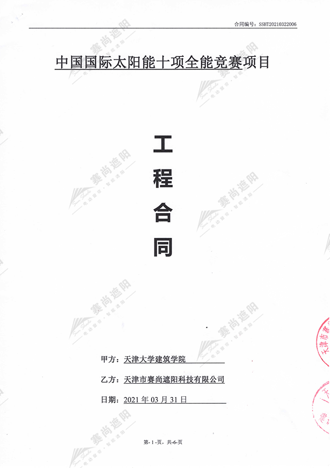 熱烈慶祝天津市賽尚遮陽科技有限公司與天津大學(xué)建筑學(xué)院成功簽署遮陽百葉加工制作合同。合同于2021年3月31日簽署。