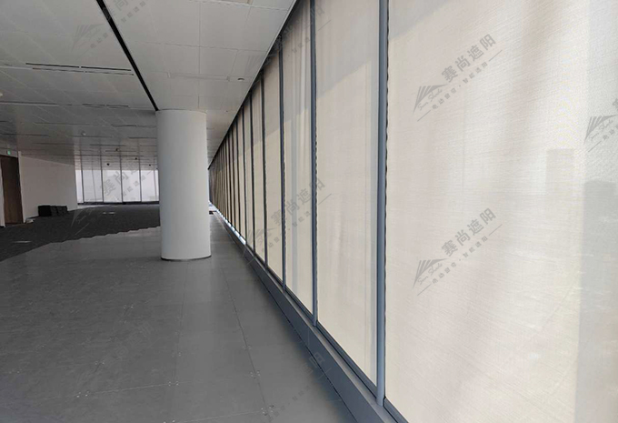 本項(xiàng)目分為塔樓A和塔樓B,建筑高度300m。采用是室內(nèi)電動(dòng)卷簾,遮光邊槽與幕墻立柱一體化設(shè)計(jì),從而使室內(nèi)得到更佳遮陽(yáng)透景效果。遮陽(yáng)面積共計(jì)為45000㎡。目前塔樓B已施工完畢等待驗(yàn)收。