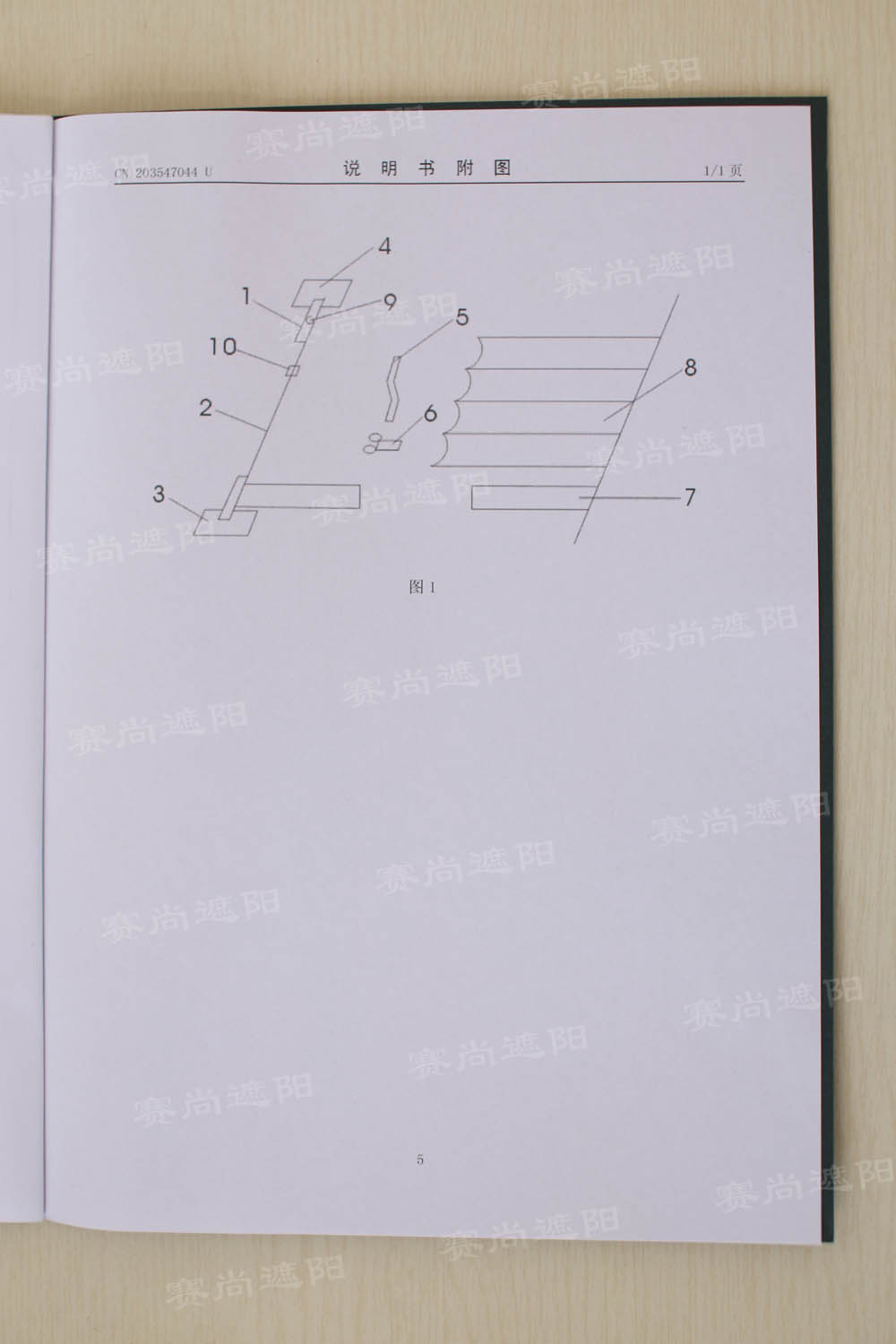 此項(xiàng)發(fā)明專利技術(shù)目前尚未應(yīng)用于公司產(chǎn)品,新專利的取得不會(huì)對(duì)公司目前經(jīng)營(yíng)產(chǎn)生重大影響,但有利于發(fā)揮公司的自主知識(shí)產(chǎn)權(quán)優(yōu)勢(shì)和完善知識(shí)產(chǎn)權(quán)保護(hù)體系,有利于增強(qiáng)公司的核心競(jìng)爭(zhēng)力。天津市賽尚遮陽(yáng)科技有限公司作為天津市創(chuàng)新型企業(yè),在科技研發(fā)的道路上始終孜孜不倦地摸索著。多年來(lái),企業(yè)以獨(dú)特的眼光、超前的意識(shí),積極實(shí)施品牌戰(zhàn)略,努力樹(shù)立企業(yè)形象。展望未來(lái),賽尚將一如既往地為您提供全方位的遮陽(yáng)解決方案,您的舒適生活賽尚愿和您共同構(gòu)建。
