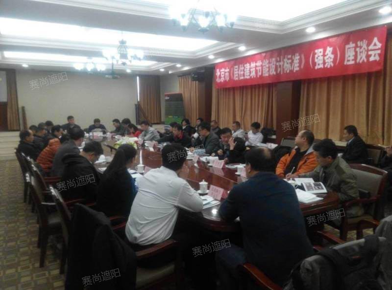 11月15日,由遮陽協(xié)會主辦的北京《居住建筑節(jié)能設(shè)計標(biāo)準(zhǔn)》 (強制性條文)座談會在京召開,遮陽協(xié)會材料分會專家委員會委員、團體會員、個人會員等參加了此次會議,天津市賽尚遮陽科技有限公司做為我國北方領(lǐng)頭的遮陽企業(yè),也應(yīng)邀參加了此次座談會。