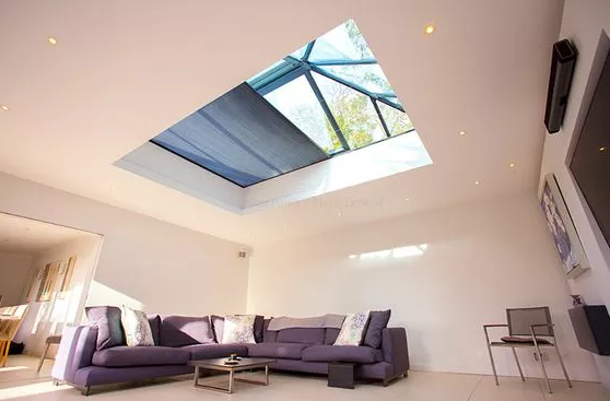 玻璃屋頂在陽(yáng)光強(qiáng)烈的情況下,會(huì)使室內(nèi)變得太熱或太亮。自動(dòng)化的天窗遮陽(yáng)產(chǎn)品,使用防眩光織物或不透明材料,可采用太陽(yáng)能充電電池驅(qū)動(dòng)。