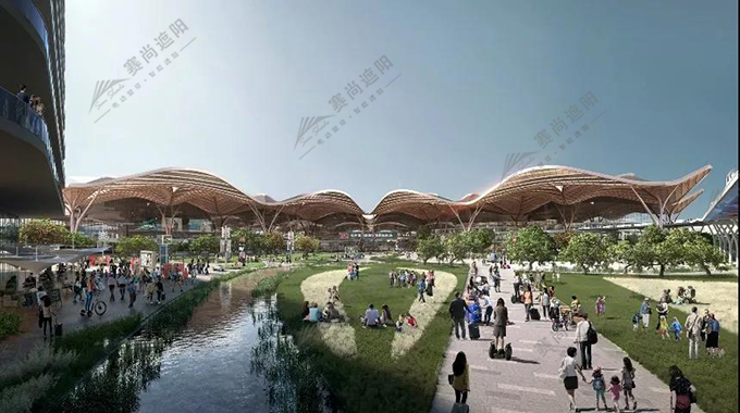 設(shè)計(jì)團(tuán)隊(duì)在從生態(tài)系統(tǒng)中汲取靈感并加以融匯的同時(shí),提倡公共交通的綠色出行理念,實(shí)現(xiàn)與自然的互聯(lián)互通,關(guān)注空間使用者的身心健康。方案團(tuán)隊(duì)將低碳設(shè)計(jì)和可持續(xù)發(fā)展作為目標(biāo),并期望新的樞紐設(shè)計(jì)能夠成為全球環(huán)境可持續(xù)設(shè)計(jì)典范。這個(gè)以生態(tài)和諧為出發(fā)點(diǎn)的樞紐項(xiàng)目在綠色建筑評級中,有望達(dá)到LEED鉑金級和中國綠建三星級的標(biāo)準(zhǔn)。