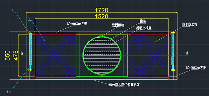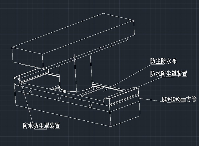 3.固定防塵罩軌道并測(cè)量防塵罩盒預(yù)留尺寸及抱箍的安裝設(shè)計(jì)。