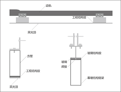 2)將鋁方通上點(diǎn)上結(jié)構(gòu)膠先粘在玻璃頂上;