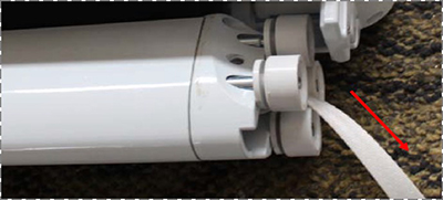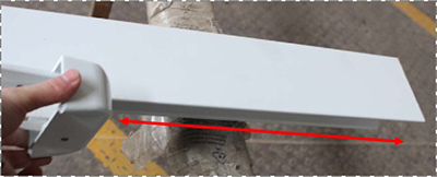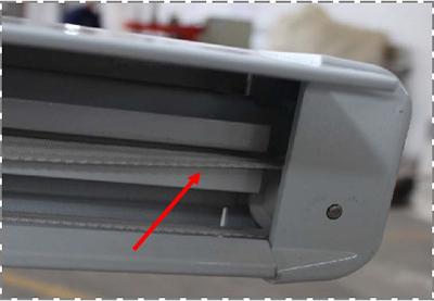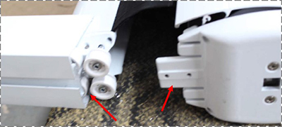 (1)通電將面料展出約30Cm,將前通滑輪對準(zhǔn)導(dǎo)軌槽,推入導(dǎo)軌;