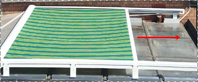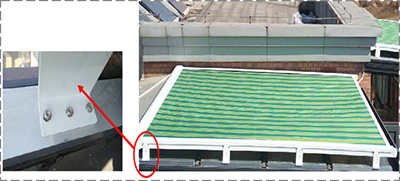 3)最后在鋁方管周圍注滿結(jié)構(gòu)膠,完全固定在玻璃頂上,之后在打上安裝碼,方便與遮陽簾固定在一起。