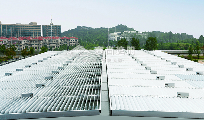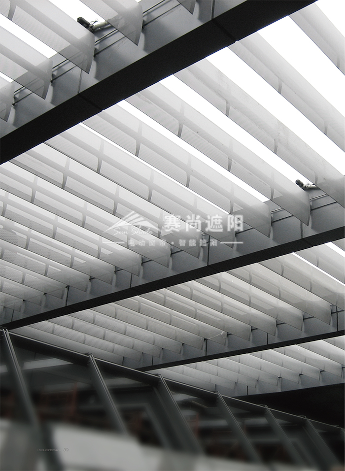 梭形百葉是根據(jù)百葉截面形狀來定義的,通常安裝在采光頂或者立面玻璃幕墻外側(cè)。根據(jù)工程需要,有固定式和活動式兩種,其中電動梭形百葉在0-110度范圍內(nèi)任意角度翻轉(zhuǎn),設(shè)計意圖是在每一種自然條件下都保持理想的室內(nèi)光照與溫度,由遮陽百葉組成的自動控制系統(tǒng)將根據(jù)您的需要自動調(diào)節(jié)百葉進行遮陽或采光,使之在每天的任何時候都能幫助您獲得怡人的生活和工作環(huán)境。梭形百葉的葉片可以遮擋太陽輻射高達80%,可節(jié)約30%以上的空調(diào)及其他相關(guān)的遮陽、采光設(shè)備造成的能耗費用。
