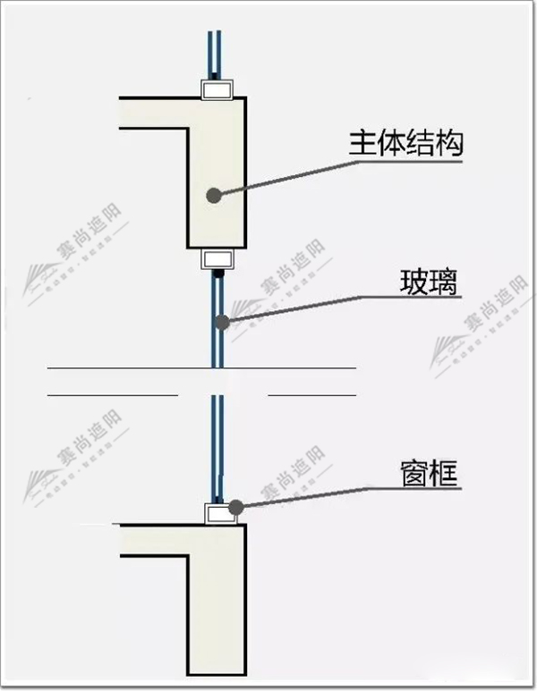 幕墻一般是突出于主體結(jié)構(gòu)外輪廓線以外,形成整體性的立面。而窗則是通常鑲嵌于主體結(jié)構(gòu)外輪廓線以內(nèi)。