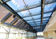 天津銀河地下商業(yè)廣場(chǎng)站頂部遮陽(yáng),采用的是FSS電動(dòng)天棚簾采光頂下部做遮陽(yáng)