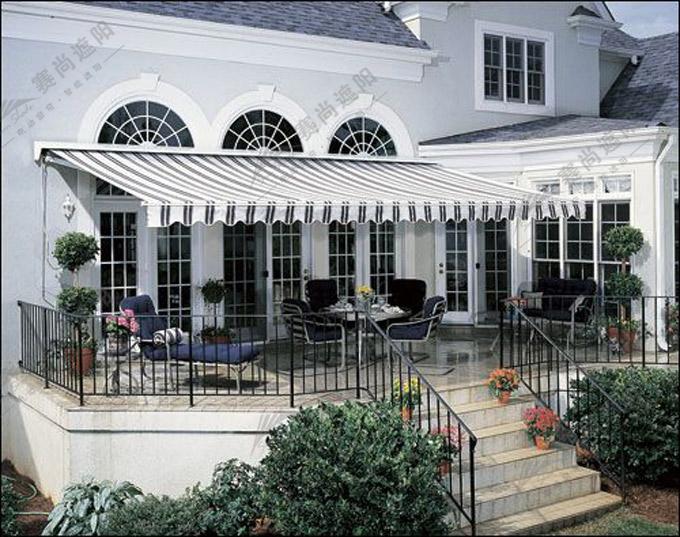 電動(dòng)遮陽(yáng)篷是一種裝在戶(hù)外的遮陽(yáng)產(chǎn)品,主要起到遮陽(yáng)隔熱及外墻美化的作用。使用抗紫外線(xiàn)面料的遮陽(yáng)篷,可以減少室內(nèi)家具受紫外線(xiàn)的損害,延長(zhǎng)室內(nèi)裝修及家具的使用壽命;配合自動(dòng)光風(fēng)傳感器,即使您不在家,也能給予您的家具和遮陽(yáng)篷較好的保護(hù)。曲臂或盒式遮陽(yáng)篷遮擋了炎炎烈日,使用戶(hù)的生活空間得以拓展;配合遮陽(yáng)篷用照明系統(tǒng),可以使電動(dòng)遮陽(yáng)篷不分白天黑夜都可以使用。