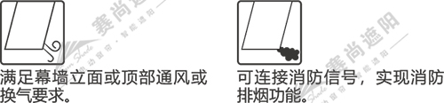 當(dāng)發(fā)生火災(zāi)時火警保護(hù)系統(tǒng)失靈的情況下,可人工按動緊急按鈕自動打開玻璃窗。