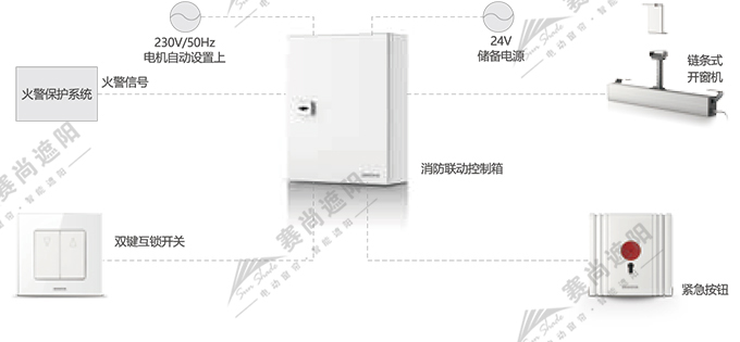 當(dāng)發(fā)生火災(zāi)時,火警保護(hù)系統(tǒng)會發(fā)出火災(zāi)報警信號給消防聯(lián)動控制器,消防聯(lián)動控制器就會打開玻璃窗,以便能把有毒煙霧排出。