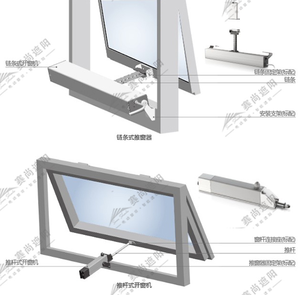 電動開窗機(jī)是利用電動設(shè)備驅(qū)動建筑物內(nèi)外各種窗戶進(jìn)行自動開合的系統(tǒng),用在側(cè)墻窗(上懸窗、中懸窗、下懸窗、側(cè)懸窗),平推窗、頂窗。電動開窗系統(tǒng)可以根據(jù)室內(nèi)外溫度,天氣等因素,自動或定時開啟建筑內(nèi)的窗戶,進(jìn)行自然通風(fēng)換氣,保持室內(nèi)空氣的新鮮,并有效調(diào)節(jié)室內(nèi)溫度,同時在火警發(fā)生時,可自動配合火警信號,開啟通風(fēng)窗,起到自然排煙作用。