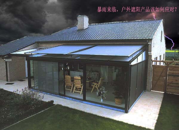將百葉、卷簾調(diào)至閉合狀態(tài),是之達(dá)到最穩(wěn)定的狀態(tài),當(dāng)然這類百葉葉片、卷簾葉片也比較結(jié)實(shí),不會易就被風(fēng)雨損壞。陽光房天幕、活動遮陽篷防雨攻略